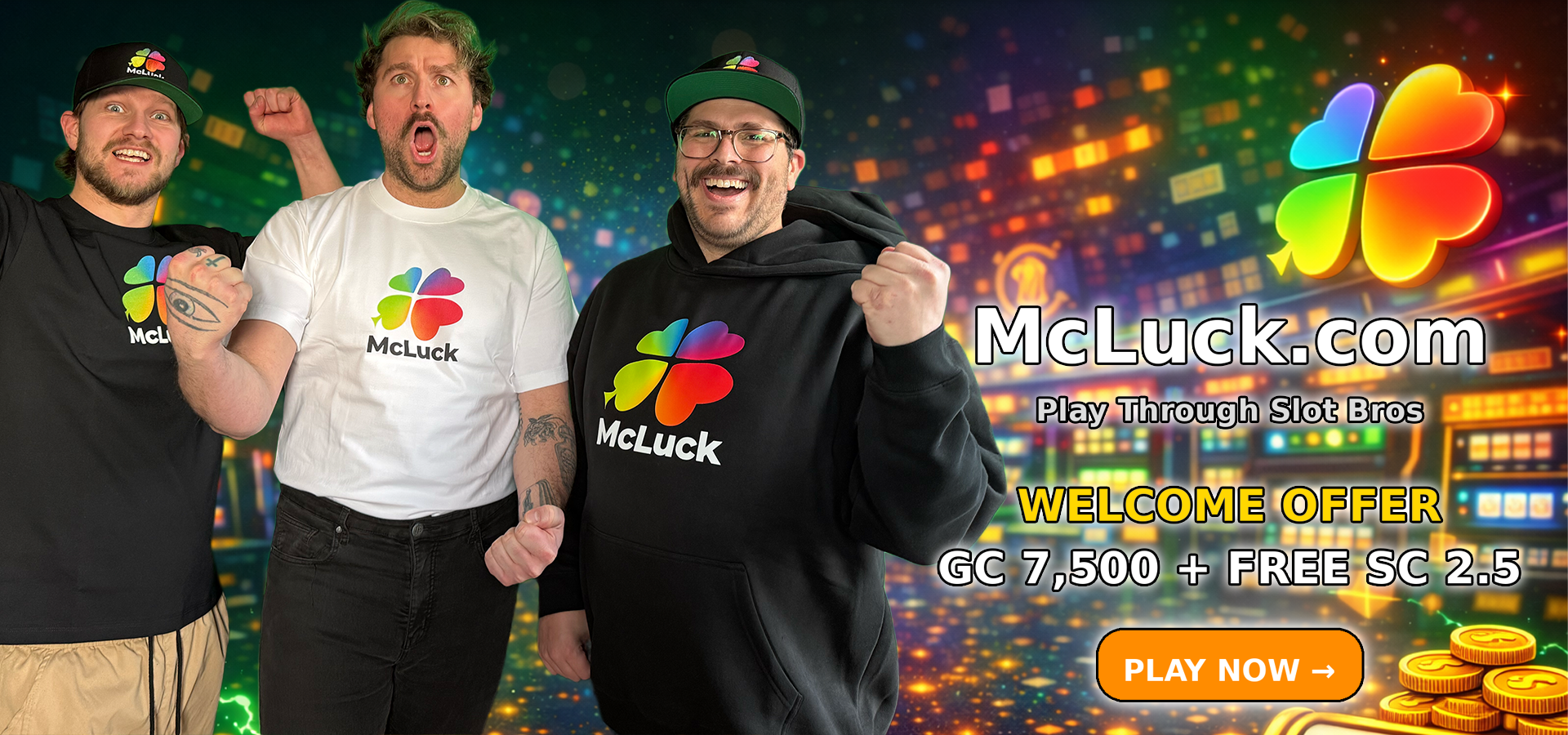 Visit McLuck through our Slot Bros partner page to view the welcome offers here first and then continue to the site.